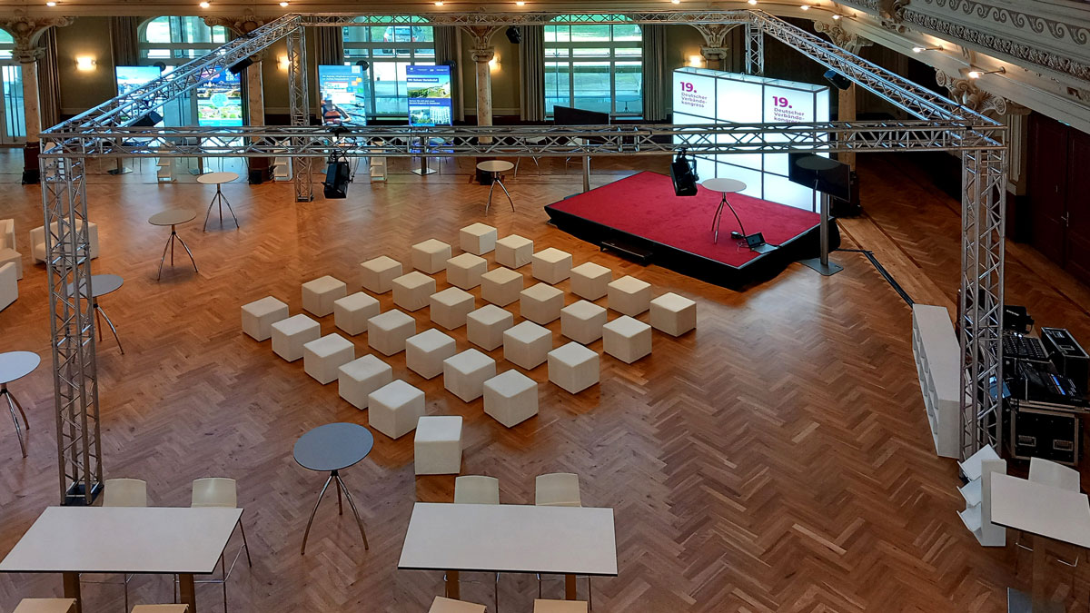 Als Veranstaltungsort diente die eindrucksvolle Historische Stadthalle Wuppertal, die wir mit einem Konzept aus 40 Einzelständen ausgestattet haben. Ein besonderes Highlight war der komplette Nachtumbau zwischen den beiden Veranstaltungstagen, der es ermöglichte, die Location optimal an die jeweiligen Programmpunkte anzupassen.